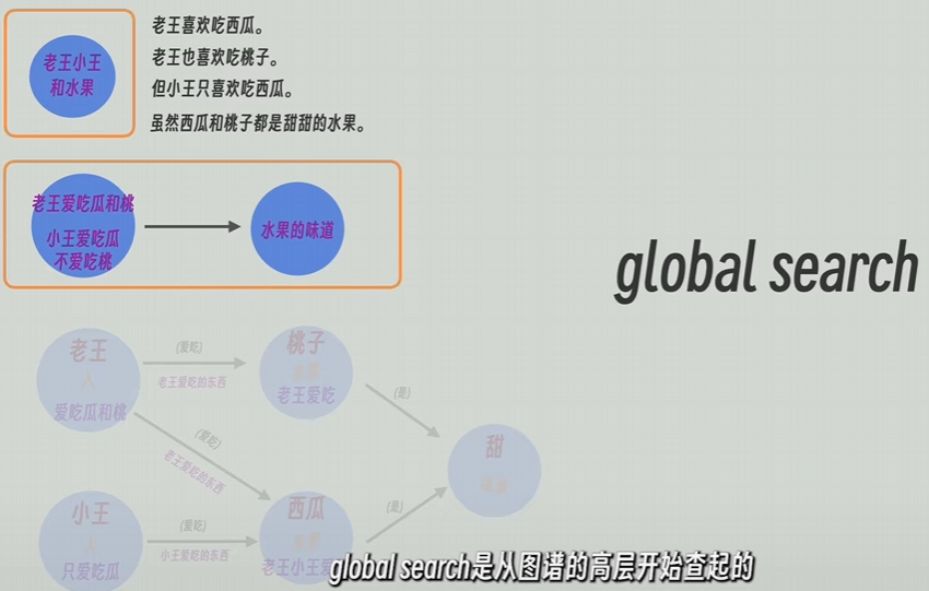 (2)Global Search 策略。从图谱的高层开始查询,一层一层往下查询,更适合回答 偏抽象,全局性更强的问题(比如 文章的核心观点是什么?)。