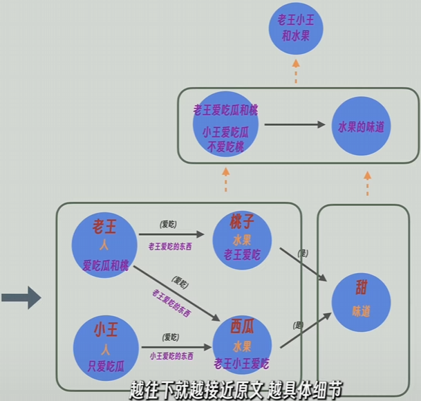 例如下图:层级越网上,信息就越抽象、精炼;越往下就越接近原文和具体细节。
